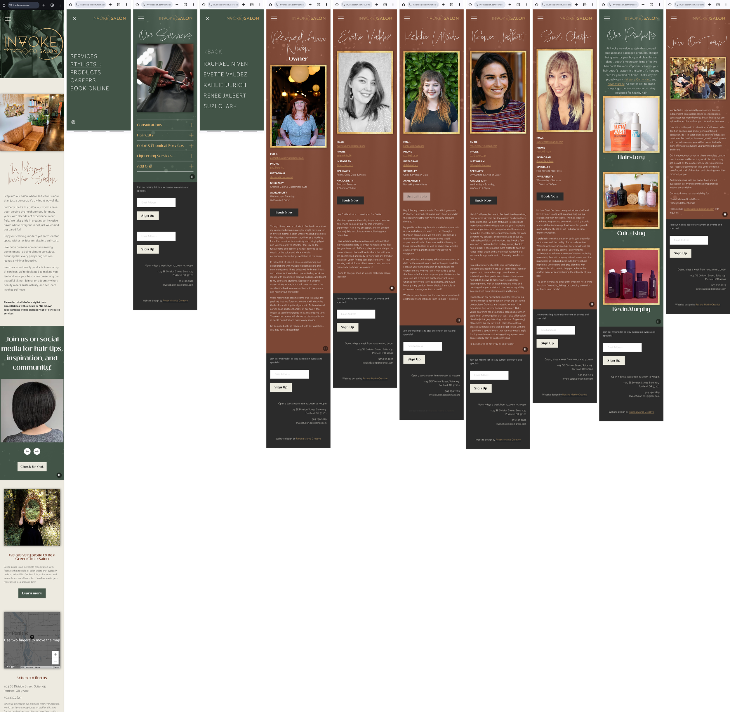 I built Invoke Salon’s website to feel as fresh and polished as the salon itself—whether you’re browsing on a big desktop screen or scrolling on your phone between appointments. The design flexes seamlessly from desktop to mobile, keeping the bold visuals and clean navigation intact at every size.